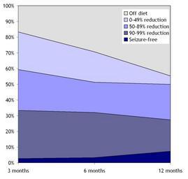 Keywords: Ketogenic diet over 12 months.png Seizure-frequency reduction over 12 months on the ketogenic diet From a prospective study of 150 children treated at Johns Hopkins Hospital Source Freeman JM Vining EP Pillas DJ Pyzik PL Casey JC Kelly LM The efficacy of the ketogenic diet-1998 a prospective evaluation of intervention in 150 children Pediatrics 1998 Dec;102 6 1358-63 PMID 9832569 Data values 3 months 6 months 12 months Initially 150 children On diet 125 106 83 0 “49 36 29 8 50 “89 39 29 34 90 “99 46 43 30 Seizure-free 4 5 11 Own 2008-03-18 Colin Nutrition |