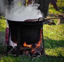 Keywords: kettle cauldron preparation food heat equipment preparing black hot boiling steam metal