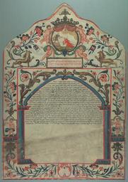 | Keywords: Ketubah, Senigallia, Italy, 1805 - Google Art Project.jpg 479183 Unknown /collection/the-jewish-museum-london/artwork/ketubah-senigallia-italy-1805-unknown/519065/ 13683 author /collection/the-jewish-museum-london/ The Jewish Museum London 437133 http //www jewishmuseum org uk/ 12/13/2011 11 48 15 AM /collection/the-jewish-museum-london/artwork/ketubah-senigallia-italy-1805-unknown/519065/ 1805 1805 740 519065 False 1805 3/24/2012 3 05 49 AM JM 479 http //www jewishmuseum org uk/search-our-collections-new adlibid 13683 offset 0 http //www jewishmuseum org uk/collections-and-picture-library-new Digital image Jewish Museum London ketubah 1800 1810 Senigallia production w535 x h740 mm 1805 False 0 705078125 text ketubah-senigallia-italy-1805-unknown Ketubah Senigallia Italy 1805 k 535 Gift of Ben Uri Gallery London JM 479 special url_id hwHDSpAY_esQTw PD-old-100 1805 in art Jewish Museum London Google Art Project works by unknown artist |