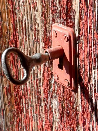 Keywords: key lock rustic door red
