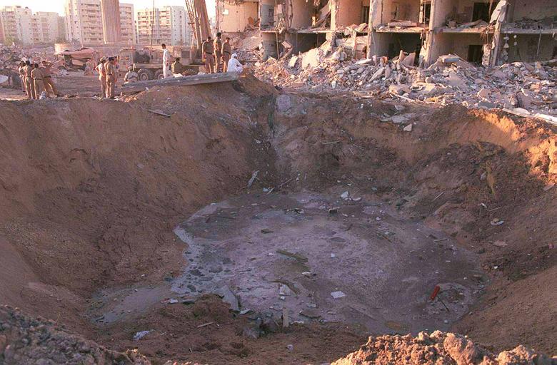 | Keywords: Khobar Towers bombing 960626-N-00000-004.jpg en U S and Saudi military personnel peer into the crater caused by the explosion of a fuel truck outside the northern fence of Khobar Towers on King Abdul Aziz Air Base near Dhahran Saudi Arabia at 2 55 p m EDT Tuesday June 25 1996 Several buildings were damaged and there were numerous U S casualties The latest information from Dhahran indicates that 19 people are dead and 64 people are hospitalized Additionally over 200 have been treated for injuries and released The facility houses U S service members and serves as the headquarters for the U S Air Force's 4404th Wing Provisional Southwest Asia 960626-N-00000-004 Navy http //www defense gov/photos/newsphoto aspx newsphotoid 325 1996-06-26 en U S Department of Defence PD-USGov-Military Import by User Slick-o-bot/Defense gov News Photos Khobar Towers bombing |