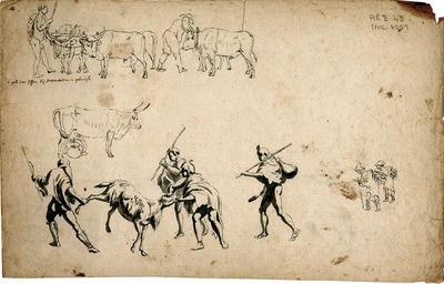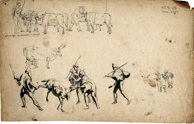 Keywords: Khoikhoi Yoking Oxen, and Other Sketches WDL11266.png Artwork ru Кой-коин зап ягающие волов и д угие наб оски fr Des Khoïkhoï attelant des bœufs à l aide d un joug et autres croquis en Khoikhoi Yoking Oxen and Other Sketches zh 科伊科伊族配轭的牛和其它素描 pt Khoikhoi colocando a canga nos bois e outros desenhos ar أحد الخويخوي يشدّ نيِّراً على ثور، ورسومات أخرى ru П едставленные здесь наб оски входят в коллекцию из 27 исунков на 15 листах обна уженных в 1986 г в ациональной библиотеке Южной Аф ики Ценность этих исунков заключается в том что они соде жат самые анние еалистичные изоб ажения п едставителей на одности кой-коин ко енных жителей Западно-Капской п овинции а этих виньетках запечатлены люди занимающиеся азличными видами деятельности вве ху мужчина кой-коин п иде живающий волов пока колонист поп авляет я мо в се едине женщина доящая ко ову в большой глиняный сосуд в левом нижнем углу мужчина усми яющий непоко ную овцу а в п авом нижнем углу женщины с каким-то г узом возможно связками хво оста а исунке написано на голландском языке Уп яжка волов уп авляемая готтентотами так называли п едставителей на одности кой-коин в пе иод основания ев опейских поселений; в настоящее в емя это название считается оско бительным Кой-коин были скотоводами кото ые выделились из южноаф иканской на одности сан занимавшейся охотой Выселенные голландцами со своих земель и поте явшие свой скот кой-коин попали в подчиненное положение и были вынуждены наниматься на аботу к колонистам есмот я на то что у кой-коин были вьючные и ездовые волы они не использовали скот в качестве тягловой силы Белые фе ме ы поселившиеся в айоне ыса Доб ой адежды в XVII веке зап ягали волов в повозки поэтому мужчина кой-коин изоб аженный на исунке очевидно аботал на фе ме а Входящие в коллекцию исунки были сделаны с нату ы и в отличие от большинства немногочисленных анних ев опейских изоб ажений п едставителей кой-коин никогда не инте п ети овались ев опейскими иллюст ато ами По всей ве оятности исунки выполнены одившимся в XVII веке голландцем кото ый по оду деятельности был связан с Голландской Ост-Индской компанией а возле ыса Доб ой адежды оказался по пути в Голландскую Ост-Индию или об атно в иде ланды Есть основания полагать что названные исунки были созданы не позднее 1713 г а быть может и го аздо аньше Большинство из них соде жат п имечания на голландском языке добавленные после 1730 г д угим человеком имя кото ого также остается неизвестным <br> ыс Доб ой адежды; К упный огатый скот; Ко енные на одности; Кой-коин аф иканский на од ; Доение; Волы fr Ces esquisses font partie d un ensemble de 27 dessins sur 15 feuilles qui a été découvert à la Bibliothèque nationale d Afrique du Sud en 1986 L importance des dessins réside dans l illustration des premières représentations réalistes des Khoïkhoï les premiers habitants du Cap-Occidental Ces vignettes représentent différentes activités en haut un homme khoï tenant des bœufs tandis qu un colon ajuste le joug au milieu une femme qui trait une vache dans un grand récipient en céramique en bas à gauche des hommes face à un mouton récalcitrant et en bas à droite des femmes portant des charges probablement du bois de chauffage Le texte en néerlandais indique « Utilisation du joug des bœufs par les Hottentots » ce dernier terme était le nom historique des Khoïkhoï à l époque de la colonisation des blancs mais il est à présent considéré comme péjoratif Les Khoïkhoï étaient des éleveurs issus des populations autochtones de chasseurs d Afrique australe les San Ayant cédé leurs terres aux Néerlandais et perdu leur bétail ils furent réduits au travail servile et obligés de travailler comme ouvriers agricoles pour les colons Bien que possédant des bœufs de somme et de monture les Khoïkhoï n utilisaient pas d'animaux de trait Les fermiers blancs du Cap au XVII e siècle utilisaient des attelages de bœufs pour tirer les chariots et l homme khoï montré ici travaille évidemment pour le fermier Les dessins de la collection ont été réalisés <em>in situ</em> et contrairement à la plupart des prem
