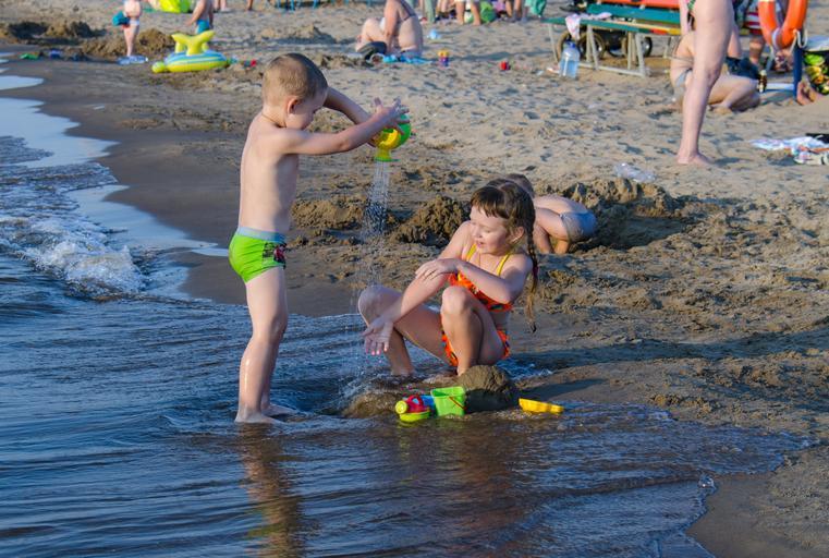 Keywords: kids beach sandy beach game childhood friends wave boy and girl river