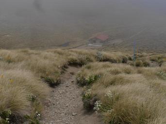 Keywords: Kime Hut 00.jpg Kime Hut W Tararua Range Tararua in the fog of a midsummer day New Year's Eve 2015-12-31 own Sarang Kime Hut