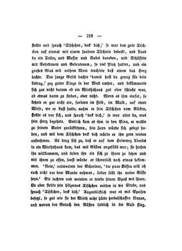 Keywords: Kinder und Hausmärchen (Grimm) 1837 V1 218.jpg 217 219 The Wishing-Table the Gold-Ass and the Cudgel in the Sack