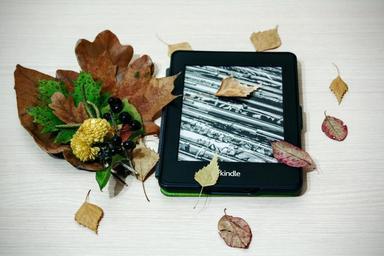Keywords: kindle pepper white reading technology digital electronic book e-book tablet education e-reader literature library internet screen device page touch autumn leaves decoration atmosphere fall season nature natural