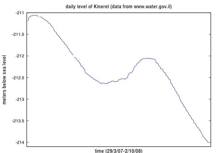Keywords: KineretLevel.jpg en Water level of the Sea of Galilee from March 2007 to October 2008 compiled from data on http //www water gov il/water/console/kinnert_history aspx Own anonymous scientist 10/2/08 Water level recorder in the Sea of Galilee |