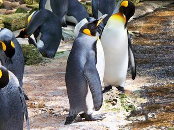 Keywords: king penguin aptenodytes patagonicus aquatic bird penguin group close-up detail