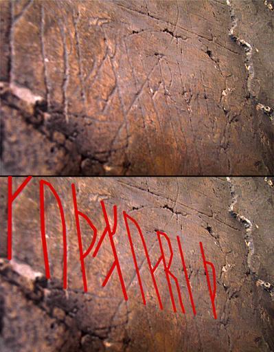 | Keywords: Kinneveds kyrka Runinskrift i kor-nisch 2010-04-22.jpg en Mediaeval runic inscription in Kinneved church in Frökind hundred Falköping municipality former Skaraborg county the Diocese of Skara Västergötland Sweden The runic inscription is found in a niche in the sanctuary a former sanctuary portal Transliterated the inscription seems to read kuþokurer or kuþokuare þ Malkolmsson read it as guðokurer and speculates that it means something like God cures In the lower half of the picture the runes are painted digitally Literature Dan Malkolmsson Om kyrkan i Kinneved och dess dolda tecken Falbygden No 60 2006 pages 79-87; Korta meddelanden Runor och andra putsristningar i Kinneveds kyrka i Västergötland Fornvännen No 102 2007 pp 37-40 Listed in Rundata as Vg Fv2007;37 sv Medeltida runinskrift i Kinneveds kyrka i Frökinds härad i Falköpings kommun i f d Skaraborgs län i Skara stift i Västergötland i Sverige Runinskriften finns i en nisch i korets södra vägg vilken ursprungligen var en koringång för prästen Runinskriften verkar translittrerad lyda kuþokurer eller kuþokuare þ Malkolmsson läser det som guðokurer och spekulerar i betydelser som Gud botar Bilden består av två likadana foton där runorna är ifyllda digitalt med Photoshop på den undre bilden Litteratur Dan Malkolmsson Om kyrkan i Kinneved och dess dolda tecken Falbygden nr 60 2006 sidorna 79-87 own Gunnar Creutz 2010-04-22 DEFAULTSORT VgFv2007;37 Cc-zero Interior of Kinneveds kyrka Medieval runic inscriptions in Sweden Falbygdens Museum Church Tours in April 2010 Photographs taken on 2010-04-22 Taken with Casio Exilim EX-Z100 Photos of churches by User Achird CC0 1 0 Files by Gunnar Creutz Runestones Västergötland 2010 in Falköping Municipality April 2010 in Sweden Churches in Sweden photographed in 2010 |