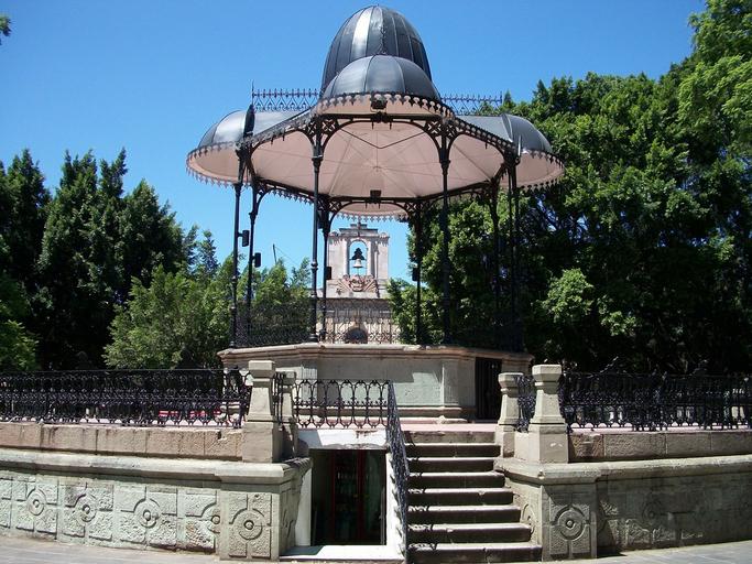 Keywords: kiosk plinth architecture canopy pedestal platform city landmark trees sky blue
