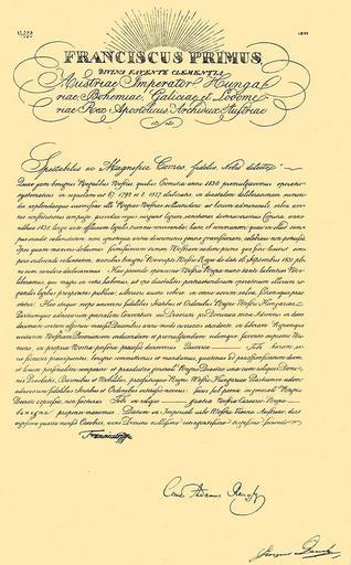 Keywords: Királyi meghívó az 1832. évi országgyűlésre.jpg Királyi meghívó az 1832 évi országgyűlésre Csáky Manó meghívója OSZK DKA http //keptar oszk hu/006900/006993/3b8d jpg http //keptar oszk hu/html/kepoldal/index phtml id 6993 1832-10-24 author PD-old Historical documents of Hungary 1832 in Hungary Reform age in Hungary 1832 documents |