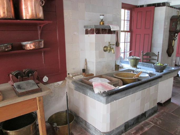Keywords: kitchen pots pans copper old fashioned museum pump