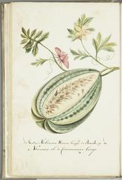 Keywords: KITLV - 37A45 - Markée, Cornelis - Watermelon with leaves and butterfly - Brush drawing - Circa 1763.tif accession number 37A45 Markée Cornelis credit line Collection Markée Cornelis nl De Water Meloenen wassen langs de Aarde op de mannier als de comcommeren groeije en Watermelon with leaves and butterfly 38 x 24 cm exhibition history Universiteitsbibliotheek Leiden Koninklijk Instituut voor Taal- Land- en Volkenkunde nl Penseeltekening en Brush drawing Keywords fruits - plants - Suriname object history origin object type PD-old-100-1923 KITLV donation place of creation place of discovery Pictures of the tropics a catalogue of drawings water-colours paintings and sculptures in the collection of the Royal Institute of Linguistics and Anthropology in Leiden / by J H Maronier - 's-Gravenhage Nijhoff 1967 - p 98 Een kopie naar/A copy after 'Metamorphosis Insectorum Surinamensium ofte verandering der Surinaamsche insecten waar in de Surinaamsche rupsen en wormen met alle des zelfs veranderingen na het leven afgebeeld en beschreven worden ' / door Maria Sybilla Merian - Amsterdam Valck 1705 2 60 p 61 pl - ill - Plaat XV http //media-kitlv nl/all-media/indeling/detail/form/advanced q_search_signatuur 37A45 Leiden University Library KITLV image 37A45 http //media-kitlv nl Homepage media-kitlv nl KITLV Uploaded with GWToolset KITLV_-_37A45_-_Markée _Cornelis_-_Watermelon_with_leaves_and_butterfly_-_Brush_drawing_-_Circa_1763 https //socrates leidenuniv nl/wikiMedia/37A45 tif Media contributed by KITLV Artwork by Cornelis Markée from KITLV Unidentified Lepidoptera illustrations Watermelons in art Citrullus lanatus - botanical illustrations |