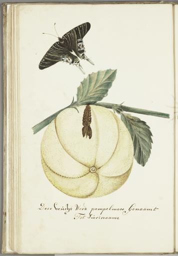 Keywords: KITLV - 37A65 - Markée, Cornelis - Grapefruit with leaves, caterpillar and butterfly, Suriname - Brush drawing - Circa 1763.tif accession number 37A65 Markée Cornelis credit line Collection Markée Cornelis nl Dese vrucht werd pompelmoes genaamt tot Surinaame en Grapefruit with leaves caterpillar and butterfly Suriname 38 x 24 cm exhibition history Universiteitsbibliotheek Leiden Koninklijk Instituut voor Taal- Land- en Volkenkunde nl Penseeltekening en Brush drawing Keywords butterflies - fruit trees - insects - Suriname object history origin object type PD-old-100-1923 KITLV donation place of creation place of discovery Pictures of the tropics a catalogue of drawings water-colours paintings and sculptures in the collection of the Royal Institute of Linguistics and Anthropology in Leiden / by J H Maronier - 's-Gravenhage Nijhoff 1967 - p 99 Een kopie naar/A copy after 'Metamorphosis Insectorum Surinamensium ofte verandering der Surinaamsche insecten waar in de Surinaamsche rupsen en wormen met alle des zelfs veranderingen na het leven afgebeeld en beschreven worden ' / door Maria Sybilla Merian - Amsterdam Valck 1705 2 60 p 61 pl - ill - Plaat XXIX http //media-kitlv nl/all-media/indeling/detail/form/advanced q_search_signatuur 37A65 Leiden University Library KITLV image 37A65 http //media-kitlv nl Homepage media-kitlv nl KITLV Uploaded with GWToolset KITLV_-_37A65_-_Markée _Cornelis_-_Grapefruit_with_leaves _caterpillar_and_butterfly _Suriname_-_Brush_drawing_-_Circa_1763 https //socrates leidenuniv nl/wikiMedia/37A65 tif Media contributed by KITLV Artwork by Cornelis Markée from KITLV Unidentified Lepidoptera illustrations |