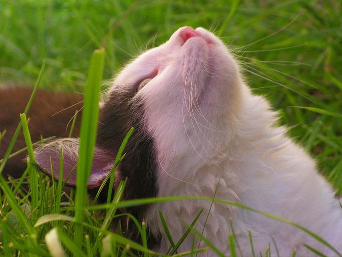 Keywords: kitten cat black and white hairy in the grass cute snout head