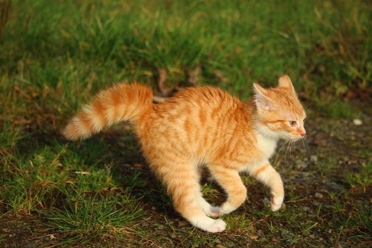 Keywords: kitten red mackerel tabby cat baby cat autumn playful meadow