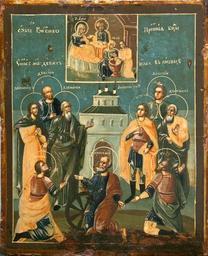 | Keywords: Kizichesky martyrs.jpeg  ru Девять мучеников Кизических с с иконой Рождества Бого одицы Слобода Холуй конец XVIII в Оклад - около 1868 г Де ево левкас темпе а тво ёное се еб о 27х21 5 см Частное соб ание XVIII c http //www cirota ru/forum/view php subj 53426 message 3243279 anonimus PD-Art Uploaded with UploadWizard Nine martyrs of Kizikos |