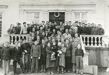 Keywords: Norsk mottagercentral på Kjesäter. På Kjesäter slott i syd-Sverige har de norske myndigheter en mottagercentral for flyktninger fra Norge. Her registreres og legeundersøkes alle flyktninger før de reiser videre, noen til de norske politiforlegningenr, andre til skoler eller sivilt arbeide, familieforlegninger, kvinneforlegninger etc. Bildet viser norske flyktninger oppstillet på trappen til hovedbygningen på Kjesäter. RA/PA-1209/Uc/65/1-2/S 5500 Norsk mottagercentral på Kjesäter. På Kjesäter slott i syd-Sverige har de norske myndigheter en mottagercentral for flyktninger fra Norge. Her registreres og legeundersøkes alle flyktninger før de reiser videre, noen til de norske politiforlegningenr, andre til skoler eller sivilt arbeide, familieforlegninger, kvinneforlegninger etc. Bildet viser norske flyktninger oppstillet på trappen til hovedbygningen på Kjesäter. RA/PA-1209/Uc/65/1-2/S 5500 |