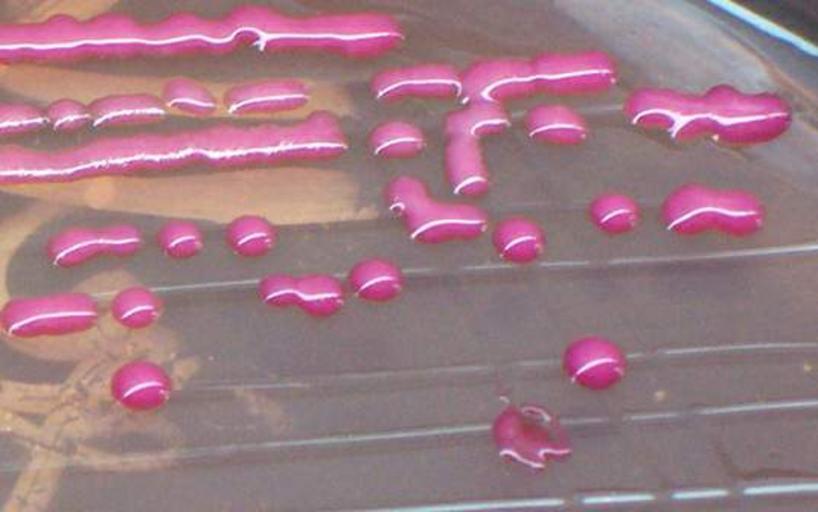 Keywords: Klebsiella pneumoniae mucoid.jpg en Lactose fermenting mucoid colonies of Klebsiella pneumoniae on MacConkey's agar own Microrao JJMMC Davangere Karnataka India Microbiological cultures J J M Medical College Klebsiella pneumoniae