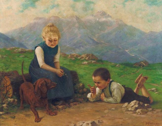 MAKE A MEME View Large Image Kleehaas Kinderpaar mit Dackel.jpg Theodor Kleehaas Kinderpaar auf einer Alm erzieht einen Dackel oil on canvas 64 x 84 5 cm http //www zeller de/ 19th or 20th century Theodor Kleehaas PD-art People with dogs in art Theodor Kleehaas ...