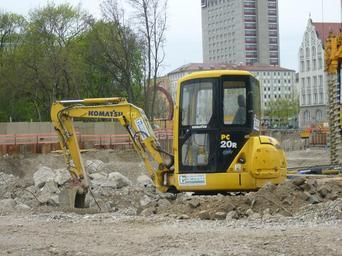 Keywords: Kleinbagger.JPG A small Komatsu excavator Komatsu-Kleinbagger own 2005-04-25 User Mattes FoP-Germany Yellow vehicles Compact excavators Work by Mattes 2005 Komatsu excavators User Mattes/Contributions/Topics/Germany/München User Mattes/Contributions/Topics/Transport