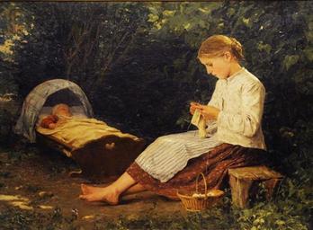 | Keywords: 'Knitting Girl Watching the Toddler in a Craddle' (1885) by Albert Anker, Sotheby's.jpg Artwork Creator Albert Anker title Strickendes Mädchen Kleinkind in der Wiege hütend Knitting girl watching the todler in a craddle Sotheby's oil canvas cm 54 70 1885 object history private collection France <br/>Galerie Römer Zurich 1983 <br/> private collection Switzerland credit line ~ lower left signature and date Albert Anker - Strickendes Mädchen Kleinkind in der Wiege hütend jpg PD-old-100 DEFAULTSORT Albert Anker - Strickendes Mädchen Kleinkind in der Wiege hütend Albert Anker - superseded files |