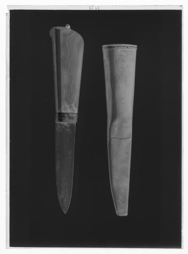| Keywords: Kniv , Sverige 1758 - Livrustkammaren - 78618-negative.tif Skaft av rosa bandagat med spetsoval genomskärning tången upptill fästad med oval platta och nitknapp av silver Nedtill på fästet ett 10 mm brett ringformigt beslag av silver på detta graverad text Om du dig Skiär Så Skyl eij mig ty Jag är blind och Ser eij dig anno 1758 <br/><br/>Blad kort brett eneggat på ena sidan inslaget stämpel BB under halvmåne original caption 1758 steel b2 - blankvapen - klinga material stål - silver b1 - blankvapen - fäste material silver size mm 207 size mm 38 size mm 102 blad size mm 22 blad g 140 LRK B B under liggande halvmåne FB anv b2 - blankvapen - klinga; anonym klingsmed Om Du dig Skiär Så Skyl eij mig ty Jag är blind och Ser eij anv b4 - blankvapen - fästdekor; slaktnr 10311 B B under liggande halvmåne FB anv b2 - blankvapen - klinga; anonym klingsmed Om Du dig Skiär Så Skyl eij mig ty Jag är blind och Ser eij anv b4 - blankvapen - fästdekor; slaktnr 10311 place of origin original filename LN_B12859_015739 41485 inventory number LRK 4926 78618 CC0 Kniv Sverige 1758 - Livrustkammaren - 78618 tif <gallery caption Different images of same object > File Kniv Sverige 1758 - Livrustkammaren - 1573 tif </gallery> |
