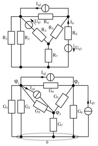 Keywords: Knotenpotentialverfahren Bsp.svg en example circuit for nodal analysis de Beispiel Schaltung für Knotenpotentialverfahren own Backsideficker Nodal analysis Circuit diagrams