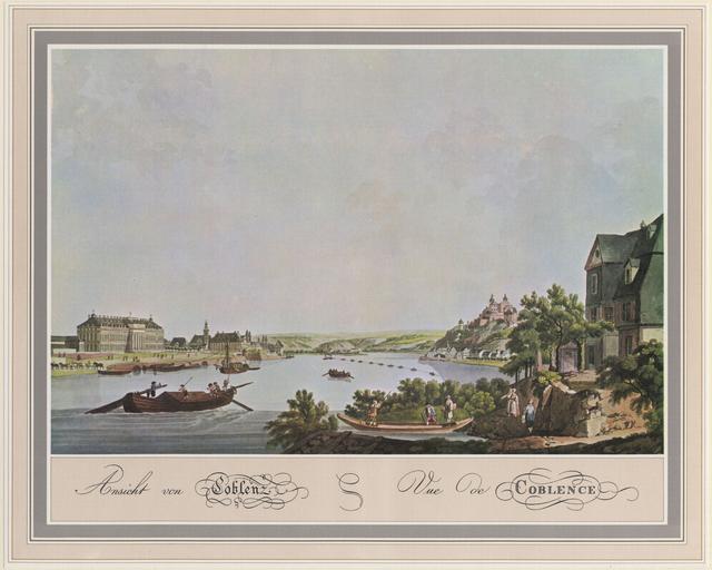 | Keywords: Koblenz Ansicht mit Kurfuerstlichem Schloss und Burg Johann Andreas Ziegler.jpg Koblenz Ansicht mit Kurfürstlichem Schloss und Burg; Kupferstich aquarelliert aus »Fünfzig malerische Ansichten Rhein-Stroms von Speyer bis Düsseldorf« erschienen bei Artaria in Wien 1798; nach Aquarellen von Laurenz Janscha die im Sommer 1792 entstanden http //images zeno org/Kunstwerke/I/big/561s023a jpg 1792 Creator Johann Andreas Ziegler PD-old-100 Fünfzig malerische Ansichten Rhein-Stroms von Speyer bis Düsseldorf Historic views of Koblenz Kurfürstliches Schloss Koblenz Koblenz in the 18th century Images from zeno org |