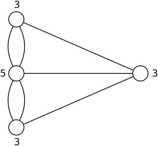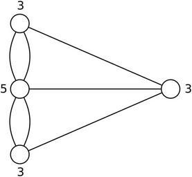 | Keywords: Koenigsberger bruecken graph.svg en Graph for the Seven Bridges of Königsberg replaces jpg 2012-06-19 own Totalt cc-zero Uploaded with UploadWizard Images with LaTeX source code Seven Bridges of Königsberg Code Erstellt mit PGF/Tikz und pdflatex In svg konvertiert in Inkscape <source lang latex > \documentclass10pt scrartcl \usepackage tikz \usetikzlibrary positioning \begin document \begin tikzpicture node distance 2cm bend angle 25 thick main node/ style circle draw inner sep 0 2cm \nodemain node label above 3 0 ; \nodemain node label left 5 1 below of 0 ; \nodemain node label below 3 2 below of 1 ; \nodemain node label right 3 3 right 4cm of 1 ; \draw 0 to bend left 1 ; \draw 1 to bend left 0 ; \draw 1 to bend left 2 ; \draw 2 to bend left 1 ; \draw 0 to 3 ; \draw 2 to 3 ; \draw 1 to 3 ; \end tikzpicture \end document </source> |