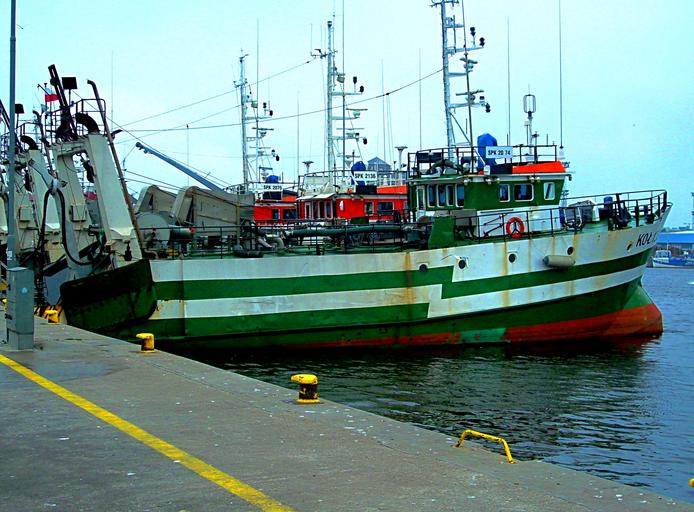 Keywords: kolobrzeg poland port ships commercial fishing vessels fishing moored pier