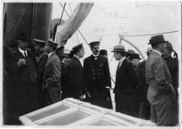Keywords: blackandwhite monochrome black and white DESCRIPTION: Customs Inspector Malcolm Reid (with moustache), H.H. Stevens, and newsmen aboard the Komagata Maru VPL Accession Number: 126 Date: May 23 - July 23, 1914 Photographer/Studio: Canadian Photo Company SUBJECTS: Komagata Maru Incident, 1914, East Indians East Indian Canadians, Sikhs, Sikh Canadians, Emigration and immigration, Customs administration, Journalists Location: British Columbia - Vancouver- Burrard Inlet More information on our historical photograph collection: www.vpl.ca/historicalphotos DESCRIPTION: Customs Inspector Malcolm Reid (with moustache), H.H. Stevens, and newsmen aboard the Komagata Maru VPL Accession Number: 126 Date: May 23 - July 23, 1914 Photographer/Studio: Canadian Photo Company SUBJECTS: Komagata Maru Incident, 1914, East Indians East Indian Canadians, Sikhs, Sikh Canadians, Emigration and immigration, Customs administration, Journalists Location: British Columbia - Vancouver- Burrard Inlet More information on our historical photograph collection: www.vpl.ca/historicalphotos |