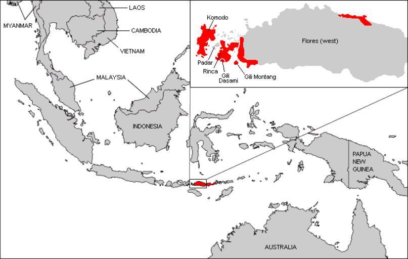Keywords: KomodowaranVerbreitungMurphyetal2002Ciofi2004.PNG en Distribution of the Komodo Dragon according to J Murphy C Ciofi C de la Pennouse T Walsh 2002 Komodo Dragons - Biology and Conservation Smithsonian Books Washington ISBN 1588340732 Claudi Ciofi 2004 Varanus komodoensis In E R Pianka D R King Hrsg Varanoid Lizards of the World S 197 “204 Indiana University Press Bloomington Indianapolis ISBN 0253343666 It was painted by hand in Microsoft Paint so it might be slightly inaccurate Derivation of File Komodo dragon distribution gif This file gives no sources so I did this one with using sources It differs slightly from the old version This version was edited by user Martin-rnr using Microsoft Paint 2011-02-17 Cc-zero Varanus komodoensis Varanidae distribution maps |