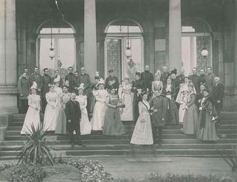 | Keywords: König Wilhelm II. Hochzeit Pauline 1898.JPG en The Wuerttemberg Royal family and guests at the wedding of Princess Pauline of Wuerttemberg and the Hereditary Prince of Wied Stuttgart October 1898 de Foto der Familie und der Ehrengäste bei der Hochzeit der Prinzessin Pauline von Württemberg mit Prinz Friedrich von Wied Stuttgart im Oktober 1898 Von links nach rechts Vorne König Wilhelm II von Württemberg; Prinzessin Pauline von Württemberg; Erbprinz Friedrich von Wied Zweite Reihe Frauen Prinzessin Elisabeth von Wied; Prinzessin Alexandra von Schaumburg-Lippe; Prinzessin Luise von Wied; Prinzessin Elisabeth von Waldeck; Königin Wilhelmine der Niederlande; Königinmutter Emma der Niederlande; Königin Charlotte von Württemberg Gemahlin von König Wilhelm II ; Prinzessin Katharina von Württemberg Mutter von König Wilhelm II ; Fürstin zu Wied; Herzogin Hermine von Württemberg; Prinzessin Isabella von Sachsen Gemahlin des Herzogs Johann Georg; Tochter des Herzogs Philipp von Württemberg ; Fürstin Pauline zu Bentheim-Steinfurt; Herzogin Margarete Sophie von Württemberg Gemahlin von Herzog Albrecht ; Erbgroßherzogin Hilda von Baden Gemahlin des Erbgroßherzogs Friedrich ; Prinzessin Bathildis von Schaumburg-Lippe; Herzogin Helene von Albany Dritte Reihe Männer Prinz Bernhard von Weimar; Herzog Robert von Württemberg Sohn des Herzogs Philipp ; Herzog von Urach; Prinz Viktor von Wied; Fürst von Urach; Herzog Ulrich von Württemberg Sohn des Herzogs Philipp ; Herzog Albrecht von Württemberg Sohn des Herzogs Philipp ; Herzog Philipp von Württemberg; Herzog Nikolaus von Württemberg; Prinz Johann Georg von Sachsen; Fürst Wilhelm Adolph Maximilian V zu Wied; Fürst Alexis zu Bentheim-Steinfurt; Erbgroßherzog Friedrich von Baden; Prinz Wilhelm von Wied; Prinz Wilhelm von Schaumburg-Lippe Fotografie Hoffotograf Stuttgart 1898-10 PD-old DEFAULTSORT 189810 House of Wied William II of Württemberg Wilhelmina of the Netherlands Emma of Waldeck and Pyrmont Charlotte of Schaumburg-Lippe Princess Catherine of Württemberg Princess Marie of the Netherlands 1841-1907 Princess Pauline of Waldeck and Pyrmont Archduchess Margarete Sophie of Austria Hilda of Nassau Princess Helena Duchess of Albany Mindaugas II of Lithuania Philipp von Württemberg Albrecht Duke of Württemberg Frederick II Grand Duke of Baden William of Wied Wedding photography 1898 in Germany History of Stuttgart Royal wedding celebrations Court uniform and dress of Germany 1898 weddings |