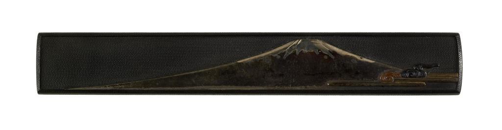 Keywords: Kôno Haruaki - Kozuka with Mt Fuji - Walters 51844.jpg Mt Fuji is executed in silver with clouds at the lower right Mt Fuji is the most sacred mountain in Japan It has long been an important site for pilgrimage and is still a popular tourist destination On the reverse is a poem by the Japanese Confusian scholar Ogyû Sorai 1666-1728 1840 Edo shakudo silver cm 9 6 accession number 51 844 15688 William T / Henry Walters Collection Baltimore date and mode of acquisition unknown Walters Art Museum Henry Walters Acquired by William T or Henry Walters Date Tenpo kanoene taisô; Translation January 1840; Signature Haruaki Hôgen kao The Taste of Maryland Art Collecting in Maryland 1800-1934 The Walters Art Gallery Baltimore 1984 place of origin Edo present-day Tokyo Japan Walters Art Museum license Tosogu Japanese sword fittings in the Walters Art Museum Kôno Haruaki Media contributed by the Walters Art Museum needs category review |