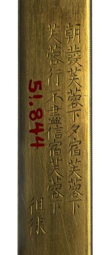 Keywords: Kôno Haruaki - Kozuka with Mt Fuji - Walters 51844 - Mark A.jpg Mt Fuji is executed in silver with clouds at the lower right Mt Fuji is the most sacred mountain in Japan It has long been an important site for pilgrimage and is still a popular tourist destination On the reverse is a poem by the Japanese Confusian scholar Ogyû Sorai 1666-1728 1840 Edo shakudo silver cm 9 6 accession number 51 844 15688 William T / Henry Walters Collection Baltimore date and mode of acquisition unknown Walters Art Museum Henry Walters Acquired by William T or Henry Walters Date Tenpo kanoene taisô; Translation January 1840; Signature Haruaki Hôgen kao The Taste of Maryland Art Collecting in Maryland 1800-1934 The Walters Art Gallery Baltimore 1984 place of origin Edo present-day Tokyo Japan Walters Art Museum license Tosogu Japanese sword fittings in the Walters Art Museum Kôno Haruaki Media contributed by the Walters Art Museum needs category review |