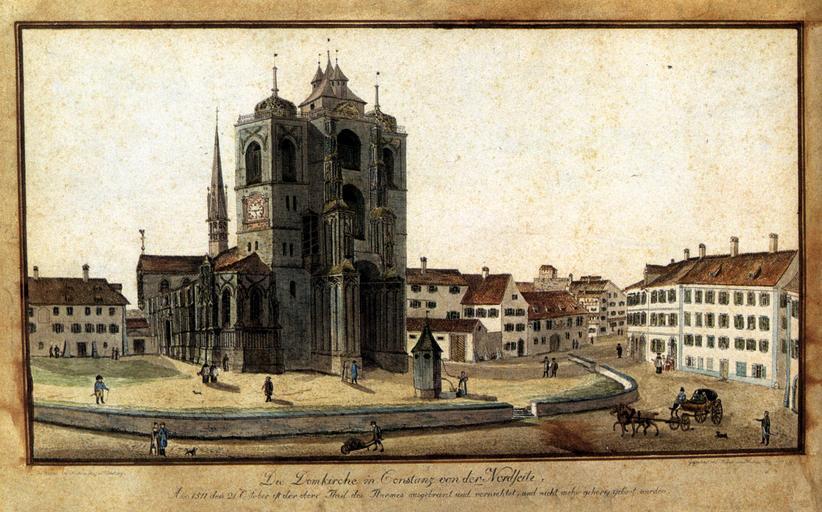 Keywords: Konstanzer Muenster 1819.jpg cm Rosgartenmuseum object history credit line accession number PD-Art Cathedral of Constance Historic views of Konstanz 1819 Rosgartenmuseum