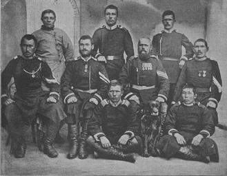 | Keywords: Konvoy 1895.jpg  en Participants in Roborovski's expedition From left to right; First line sitting Youngest Unter-officer Pavel Zamuraev Roborovski's dog zabaikalskiy сossack Buyantuev; Second line Boinov zabaikalskiy сossack Nikolai Shestakov Semirechenskiy сossack Gavrila Ivanov grenadier Semyon Zharkoy zabaikalskiy сossack ; Third Line Ilya Kurilovich Zinoviy Smirnov grenadier Efim Voroshilov ru Участники экспедиции Робо овского Слева нап аво Пе вый  яд сидят Павел Заму аев младший унте -офице 4 Ту кестанского ст елкового батальона собака Робо овского Буянтуев младший у ядник Забайкальского казачьего войска ЗКВ Вто ой  яд сидят Боинов ста ший у ядник ЗКВ  иколай Шестаков ста ший у ядник Семи еченского казачьего войска СКВ Гав ила Иванов унте -офице 2-го г енадё ского Ростовского полка Семён Жа кой ста ший у ядник ЗКВ ; Т етий  яд стоят Илья Ку илович вольнонаёмный Зиновий Сми нов ста ший унте -офице 7-го г енадё ского Самогитского полка Ефим Во ошилов ста ший унте -офице 4 Ту кестанского ст елкового батальона 1896 http //albert-motsar livejournal com/203948 html Razvedchik magazine 1896 uknown photographer Custom license marker 2014 07 21 PD-old-100 PD-anon-1923 PD-RusEmpire Uploaded with UploadWizard Explorers from Russia Roborovski Vsevolod |