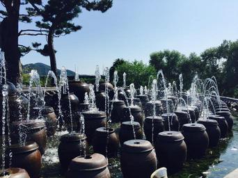 Keywords: korea semi circle fountain jar summer water lotus pond landscape park break travel healing