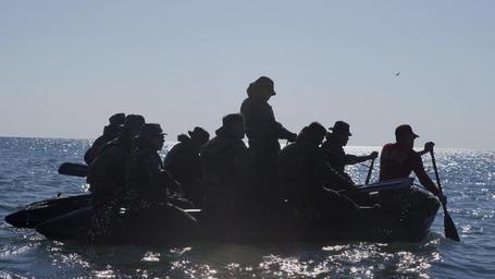 Keywords: Republic Korea Marine Corps instructor Marines paddle shore inflatable boat training Korean