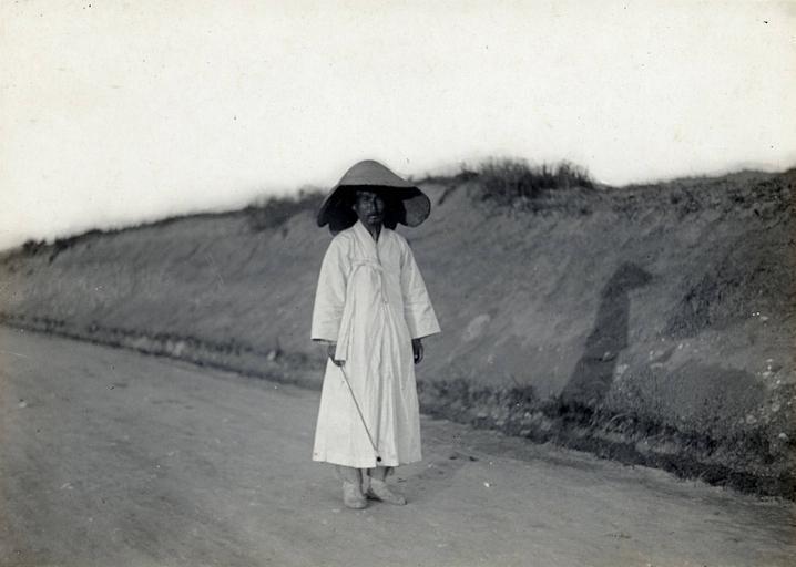 Keywords: Korean mourner, Korea, (s.d.) (Taylor box21num25).jpg en <br> Korean mourner Korea s d This is the Korean mourning hat When a man's father or mother dies it is believed that the death was due to some great wrong that the man has done This large hat is worn so that heaven will not have to look upon his guilty face This hat and sackcloth is worn by the man for a full year This man is carrying a pipe in his right hand Date created 1908/1922 Publisher of the Digital Version University of Southern California Libraries Repository Name Methodist Church U S Legacy Record ID kda-m92 Photographer Methodist Episcopal Church Format photograph Archival file kda_Volume42/Taylor_box21num25 jpg Rights Neither the General Conference nor any General Agency of The United Methodist Church successor to the Methodist Episcopal Church claims any interest in the photos or images Filename Taylor_box21num25 Coverage date 1908/1922 Contributing entity University of Southern California Repository Address Nashville Tennessee Part of collection Korean Digital Archive Donor Taylor Ewing Bevard Type images Part of subcollection The Reverend Corwin Nellie Taylor Collection Geographic Subject Country Korea Compiler Taylor Corwin; Blood-Taylor Nellie 1908/1922 Methodist Episcopal Church http //digitallibrary usc edu/cdm/ref/collection/p15799coll48/id/724 PD-Japan-oldphoto Korean archive in the USC digital library Images from USC Digital Library uploaded by Fæ |