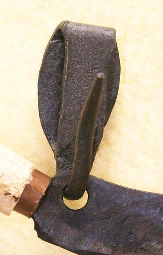 | Keywords: Kosir 003 ranpin.jpg Holder a belt hook through the blade of a Kosir a traditional vine knife from Istria Croatia Gürtelhaken eines Kosirs eines traditionellen Rebmessers aus Istrien Kroatien own 2005-10-29 according to EXIF data Petra Korlevic Knives Belts |
