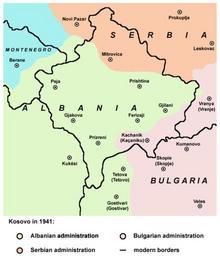 | Keywords: Kosovo 1941.png English Division of modern-day territory of Kosovo between Axis states in 1941 2009-06-02 own assumed PANONIAN self-made map by user PANONIAN References Istorijski atlas Geokarta Beograd 1999 Denis Šehić - Demir Šehić Istorijski atlas Sveta Beograd 2007 Školski istorijski atlas Zavod za izdavanje udžbenika SR Srbije Beograd 1970 Sve srpske mape - od šestog veka do Pariza Specijalno izdanje BLICA Decembar 1995 godine The Times History of Europe Times Books London 2002 Richard Overy The Times History of the 20th Century Times Books London 2004 Dr Tomislav Bogavac Nestajanje Srba Niš 1994 Noel Malcolm Kosovo - A Short History London 2002 Džon R Lempi Jugoslavija kao istorija Beograd 2004 Tim Džuda Srbi istorija mit i razaranje Jugoslavije Beograd 2003 Fransisko Veiga Balkanska zamka 1804-2001 Beograd 2003 Petrit Imami Srbi i Albanci kroz vekove Beograd 2000 Peter Bartl Albanci Clio Beograd 2001 Valter Manošek Holokaust u Srbiji Beograd 2007 Nenad Stefanović Jedan Svet na Dunavu Beograd 2003 http //terkepek adatbank transindex ro/kepek/netre/257 gif http //www marxists org/subject/yugoslavia/images/maps/1941-dismemberment jpg http //lh6 ggpht com/_WzQWv26EoIc/RlYxZ8QcGHI/AAAAAAAAAHw/poEpEv_g_0o/YU-Nazi-division jpg http //www svetskirat net/slike/razbijanje/zazbijanje_jugoslavije_1941 jpg http //anamnesis info/resources/Albania_during_WW2 gif http //tenc net/kosovomap jpg Maps of the history of Kosovo in modern times Maps of Yugoslavia during World War II Maps of Albania during World War II Maps of Serbia during World War II Maps of Bulgaria during World War II Kosovo in World War II |