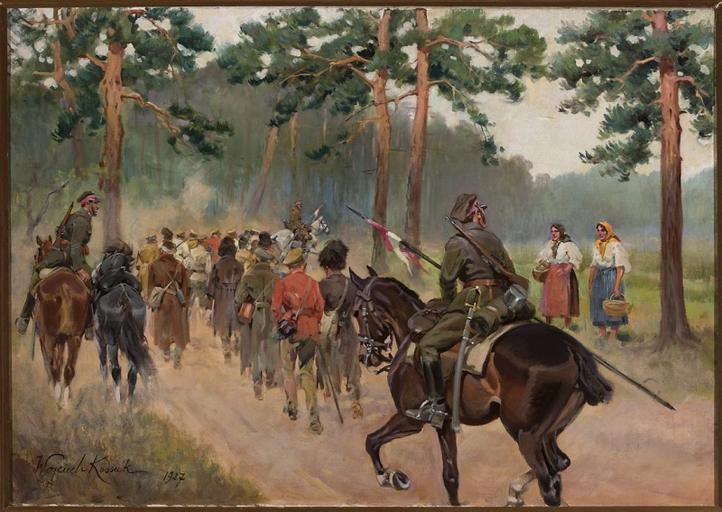 Keywords: Kossak Ułani eksportujący jeńców na leśnej drodze.jpg Artwork 1927 oil on canvas Institution National Museum Warsaw object history exhibition history credit line accession number MP 3752 place of creation http //cyfrowe mnw art pl/dmuseion/docmetadata id 16889 show_nav true cyfrowe mnw art pl Custom license marker 2015 04 29 PD-old-auto-1923 1942 Uploaded with UploadWizard Paintings by Wojciech Kossak in the National Museum in Warsaw Polish-Soviet War |