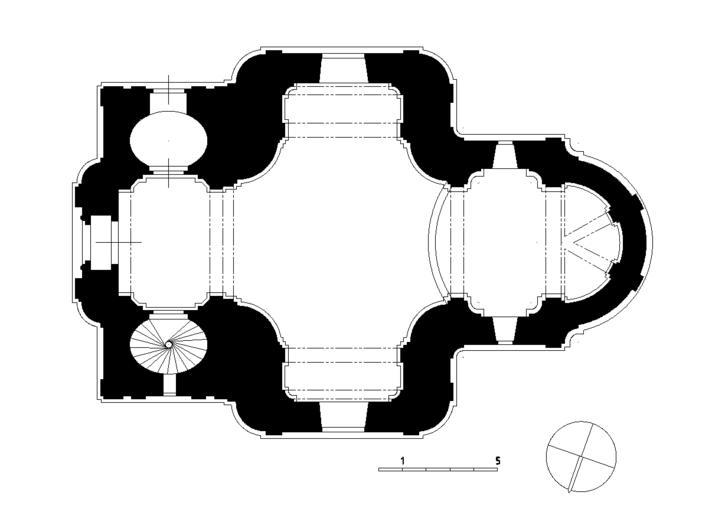 | Keywords: Kostel svatého Václava (Broumov), půdorys.GIF en this is a redrawing scan of picture from book Krajinou českého baroka / Jalna; 2004 cs obrázek vznikl překreslením naskenovaného schématu z knihy Krajinou českého baroka / Jalna; 2004 překresleno dle půdorysu z knihy Krajinou českého baroka / G Denti A Skalický st - Nakladatelství Jalna 2004 Kilián Ignác Dientzenhofer Při konfontaci měřítka stavby s katastrální mapou a Google Maps byla opravena velikost půdorysu zvětšeno cca 2x Stejná chyba měřítka stavby je uvedena i v publikaci Kilián Ignác Dientzenhofer a umělci jeho okruhu Plans of churches in the Czech Republic Church of Saint Wenceslaus Broumov |