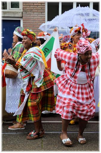Keywords: koti slavery abolition history debt pay off festivity celebration anniversary tradition walking paramaribo suriname holland netherlands amsterdam procession oosterpark music performances costumes past broken