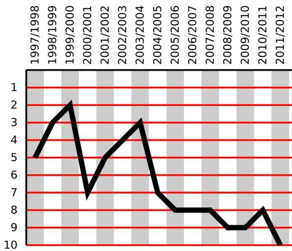 Keywords: KPSK Stal Mielec in league.svg pl Miejsca zajmowane przez KPSK Stal Mielec w lidze w latach 1998-2012 en Standings of KPSK Stal Mielec in 1998-2012 2012-03-12 own Skalee cc-zero Uploaded with UploadWizard KPSK Stal Mielec