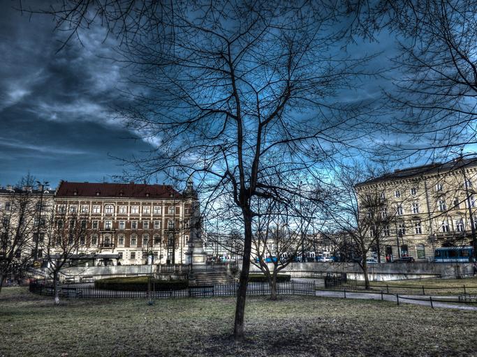 Keywords: kraków tree the city centre hdr sky dark townhouses city