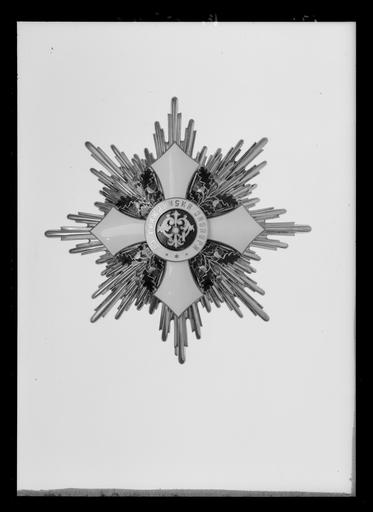 Keywords: Kraschan Civilförtjänstorden, Bulgarien - Livrustkammaren - 18626.tif LSH artwork sv Fyrauddig strålstjärna av silver lagd över likadan stjärna av förgyllt silver Därpå fäst utsidan av ordenskorset vitemaljerat kors av förgyllt silver med utböjda spetsiga armar Mellan korsarmarna ekkvistar av guld samt grön och gul emalj Rund välvd medaljong täckt med röd genomsynlig emalj därpå fäst vitemaljerat bladornament Vitemaljerad ring med kyrillisk text av guld ZA GRAZDANSKA ZASLUGA På frånsidan fyra muttrar för fastskruvning av den förgyllda strålstjärnan samt vertikalt placerad säkerhetsnål original caption kraschan Civilförtjänstorden Bulgarien - LRK 2163 1936 silver - enamel Färg vit grön gul röd material emalj g 100 size mm 96 LRK Sven Hedin Fil dr upptäcktsresande skriftställare 1865-1952 Stockholm Sverige place of origin original filename LN_B12172_015052 36622 inventory number LRK 2163 18626 CC0 Kraschan Civilförtjänstorden Bulgarien - Livrustkammaren - 18626-negative tif <gallery caption Related objects > File Civilförtjänstorden Bulgarien - Livrustkammaren - 78552 tif LRK 2161 </gallery> Orders of Sweden Media contributed by LSH 2016-12 |