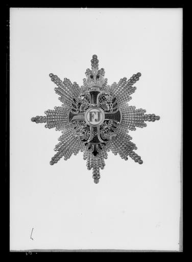 Keywords: Kraschan för kommendör med stora korset av österrikiska Franz Josephsorden - Livrustkammaren - 44309.tif LSH artwork Vincenz Mayer hovjuvelerare sv Åttauddig flinkerad välvd strålstjärna av silver med uppböjda spetsar Därpå fäst ordenskorset ett rödemaljerat kors av guld med breddade spetsar Därbakom den österrikiska krönta dubbelörnen av guld och svart emalj i näbbarna en kedja hängande över de vertikala korsarmarna och bakom de horisontella På kedjan nertill VIRIBUS UNITIS Rund vitemaljerad guldkantad medaljong därpå fäst F J av guld Korset krönt med den österrikiska kejsarkronan av guld och röd emalj med nedhängande fladdrande band På frånsidan runt firmamärke av silver Österrikiska lilla riksvapnet omskrift VINC MAYERS SÖHNE WIEN Vertikalt placerad säkerhetsnål på nålen stämplat 2 ggr A Till vänster om firmamärket stämplat G på den övre spetsen 2 manshuvud A på den nedre VM original caption 1909 silver - gold - enamel Färg röd svart vit material emalj g 92 size mm 91 LRK Sven Hedin Fil dr upptäcktsresande skriftställare 1865-1952 Stockholm Sverige place of origin Wien AT original filename LN_B12195_015075 38759 inventory number LRK 2157 44309 CC0 Kraschan för kommendör med stora korset av österrikiska Franz Josephsorden - Livrustkammaren - 44309-negative tif <gallery caption Related objects > File Ordenstecken för kommendör med stora korset av österrikiska Franz-Josephsorden - Livrustkammaren - 52870 tif LRK 2155 </gallery> Orders of Sweden Media contributed by LSH unmatched creator Media contributed by LSH 2016-12 |